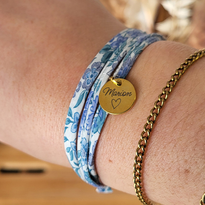 Découvrez notre collection de bracelets Liberty ! Chaque médaillon est gravé dans notre atelier situé en Normandie prés de Caen. Le ruban Liberty aux motifs floraux colorés et délicats, inspiré de l’univers romantique et élégant de la série Bridgerton, apporte une touche tendance à votre poignet.
