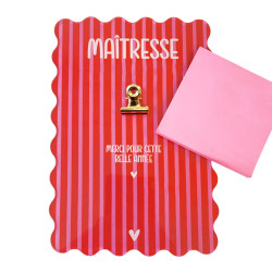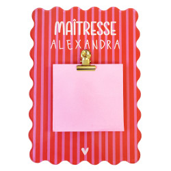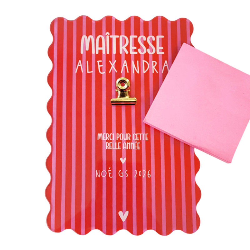 Offrez un support à notes autocollantes personnalisé, imprimé avec un joli visuel coloré et tendance, pour remercier celles et ceux qui ont accompagné votre enfant pendant l’année scolaire : maîtresse, maître, nounou, AESH ou ATSEM.