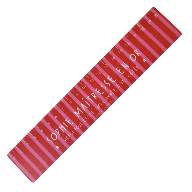 Offrez un cadeau original et utile pour remercier celles et ceux qui ont accompagné votre enfant tout au long de l’année scolaire avec notre règle personnalisée de 20 cm. Fabriquée et imprimée dans notre atelier normand, cette règle allie utilité et esthétisme, avec des couleurs joyeuses qui en font un objet unique et décoratif au quotidien.