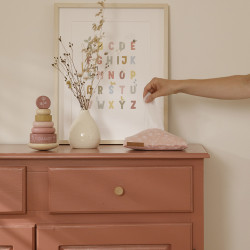 Ce jouet personnalisable aux couleurs douces et tendances pourra servir de décoration pendant les premiers mois de bébé. Posé sur une étagère, il décorera magnifiquement la chambre du nouveau-né.