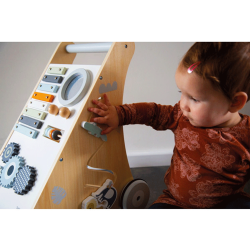 Ce chariot multi-activités en bois sera parfait pour éveiller la curiosité de vos enfants.
