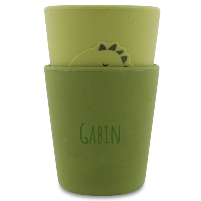 Chaque ensemble comprend deux gobelets, chacun dans un ton de couleur différente. La gravure du prénom de l'enfant sur l'arrière de chaque gobelet, facilite l'identification de l'objet.