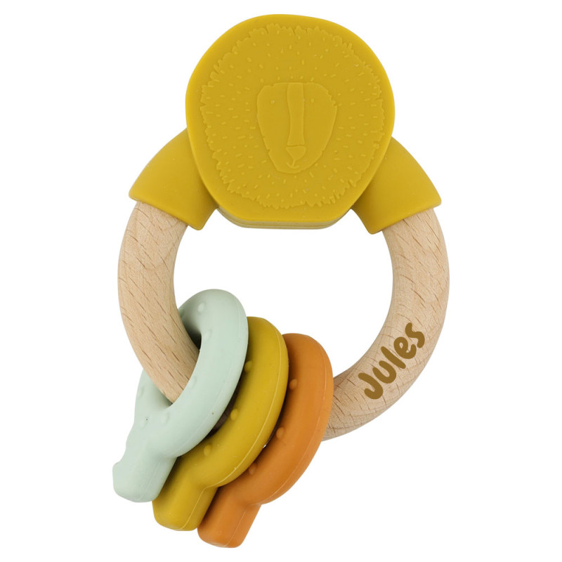 Ce très joli anneau d'activités en bois et silicone à l'effigie de Mr Lion est parfait pour les touts petits car il est manipulable dès la naissance.