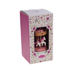 Le mécanisme de la boîte se remonte sur la partie inférieure du carrousel tout en tournant le chapiteau dans le sens des aiguilles d'une montre. Il est composé en bois et mesure 21 x 11 x 11 cm. Fabriquée par la marque renommée Amadeus, ce carrousel musical est gage de qualité. Cet adorable objet est disponible en différents coloris !