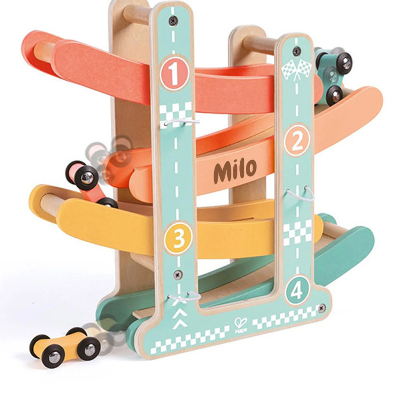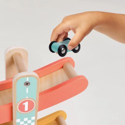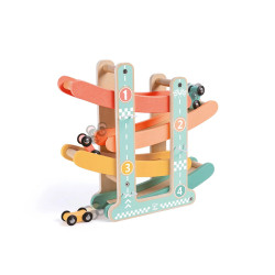 Un jouet en bois au couleur tendance qui promet des heures d’amusement. Regardez les voitures dévaler la rampe à toute vitesse, se retourner et enchaîner les descentes les unes après les autres. Laquelle arrivera en premier ? Organisez des courses et notez les résultats… 3, 2, 1, c’est parti !
