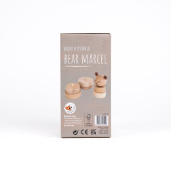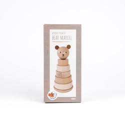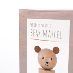 Découvrez la Pyramide en bois Marcel l'ours de la marque Egmont Toys personnalisée avec les informations de naissance de l’enfant. Un cadeau unique et original qui surprendra les heureux parents du nouveau-né.