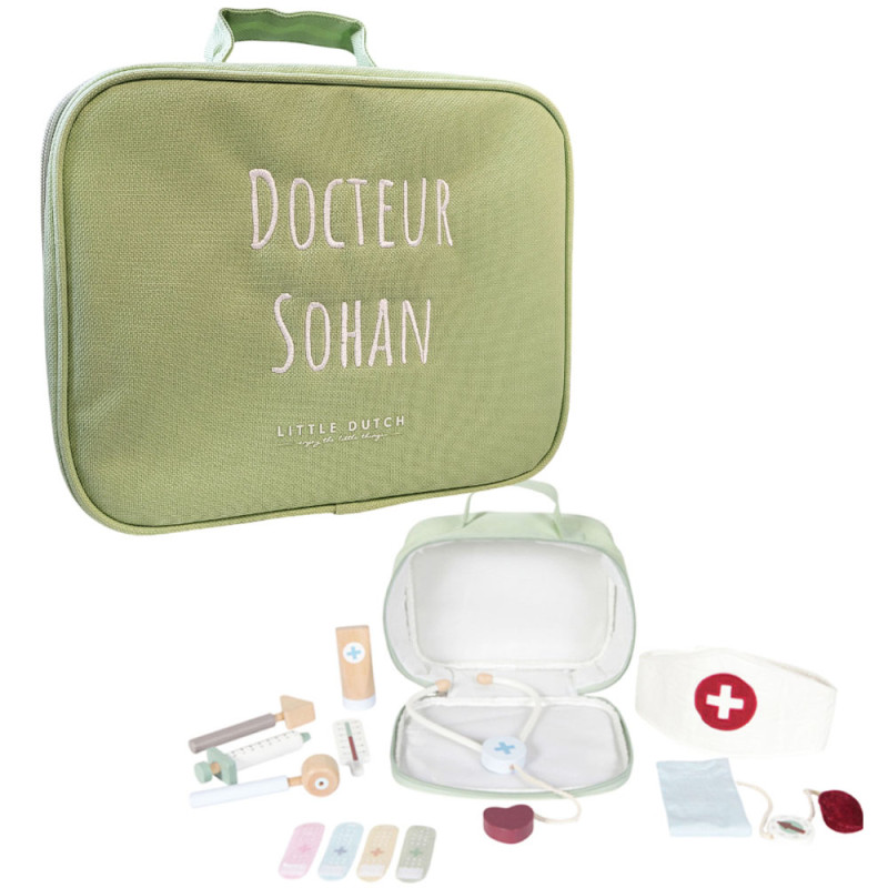 Votre enfant pourra faire comme les grands et soigner les petits bobos de ses doudous avec sa jolie mallette personnalisée.