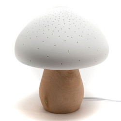 Lampe veilleuse blanche champignon en porcelaine et bois - Amadeus