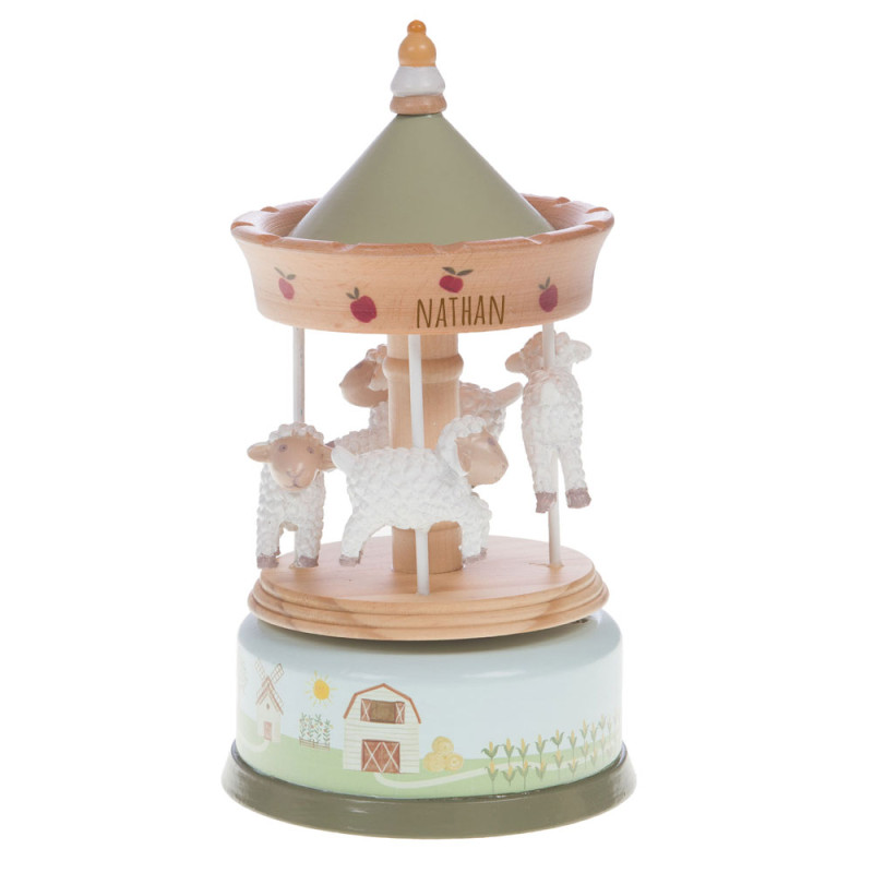 Ce magnifique carrousel musical et ses moutons de la marque Amadeus est un ravissant accessoire décoratif pour émerveiller les petits ! Vous pourrez personnaliser votre cadeau avec une gravure du prénom de votre choix.