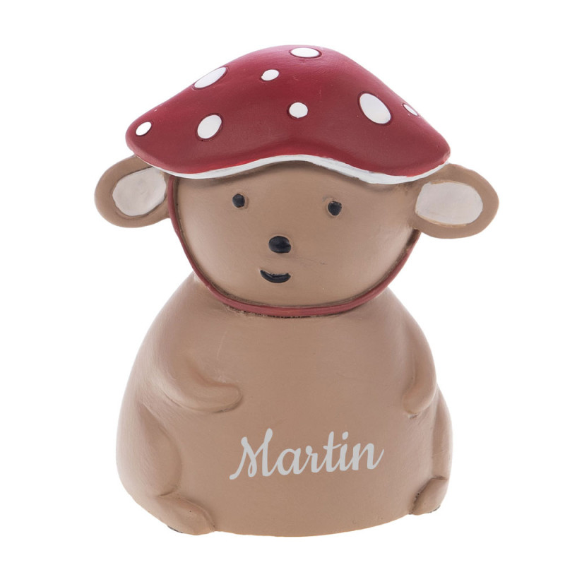 Nous avons tous déjà reçu, étant enfants, une jolie tirelire pour y glisser nos économies d'enfance. Perpétuez cette tradition en offrant à votre enfant cette adorable tirelire en forme de petite souris de la marque Amadeus. Faites-y personnaliser le prénom de votre choix pour rendre cet objet totalement unique.