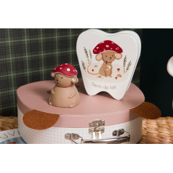 Cette adorable tirelire en résine en forme de souris et son petit chapeau champignon, elle mesure 8x6x6cm. Elle peut devenir encore plus unique grâce à la personnalisation du prénom de votre choix sur le ventre de la petite souris. La personnalisation de cette tirelire est réalisée dans notre atelier situé en Normandie, près de Caen, par notre équipe.