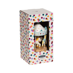 Une fois actionné, le carrousel tourne délicatement tout en diffusant une douce mélodie, créant une ambiance apaisante et rassurante dans la chambre de votre enfant. Son design festif et coloré invite à la rêverie et accompagne les moments de détente, favorisant un endormissement tout en douceur.