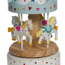 Fabriqué en bois, ce carrousel musical séduit par la qualité de ses finitions et son charme intemporel.