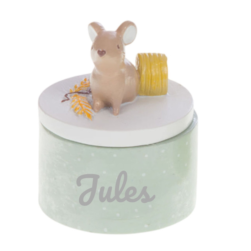 La petite souris va bientôt passer dans la chambre de votre enfant ? Offrez-lui cette adorable boîte à dents personnalisée de la marque Amadeus Les Petits pour y ranger ses petites quenottes.