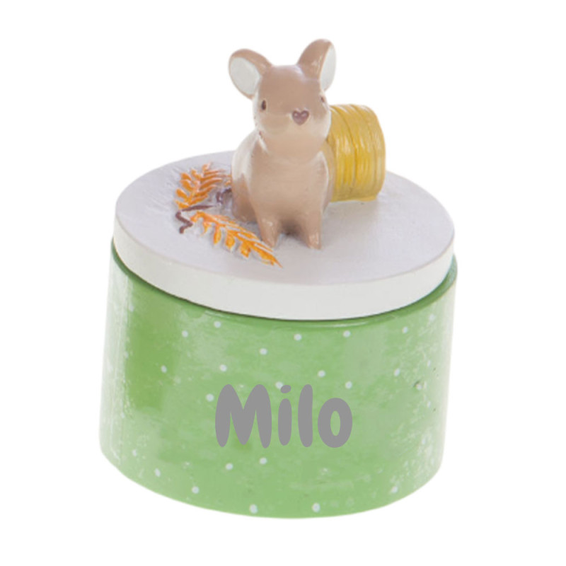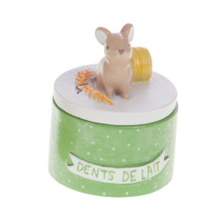 Le couvercle est orné d’une adorable figurine représentant une jolie petite souris, délicatement posée sur le dessus.