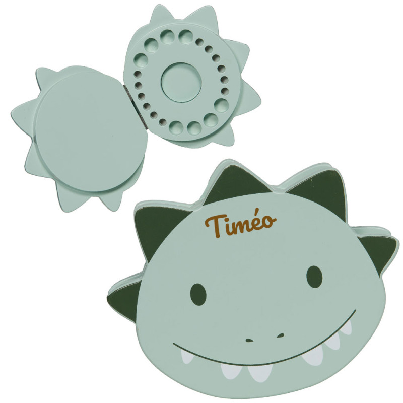 Avec sa jolie forme de tête de dinosaure et sa douce teinte vert d’eau, cette boîte apporte une touche à la fois ludique et tendance à la chambre d’enfant. Elle permet de conserver les dents de lait en toute sécurité tout en devenant un véritable petit objet décoratif.