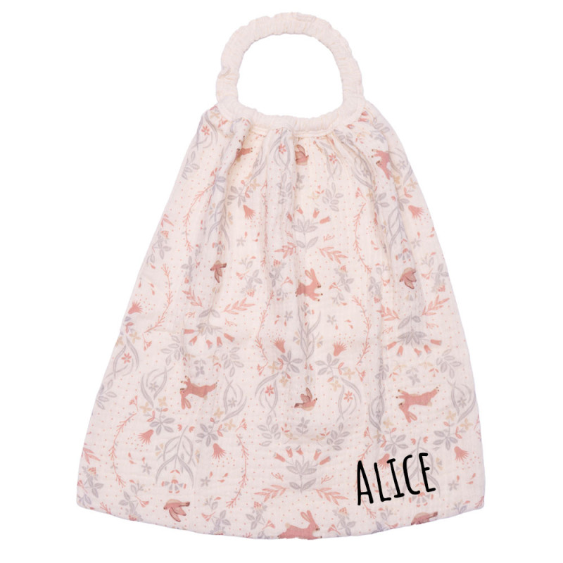 Fini les taches lors du repas à la maison ou à l’école grâce à la serviette élastiquée Jardin enchanté Ivoire – BB&Co, pratique à porter et facile à retirer. Pour éviter toute confusion à la cantine ou à la crèche, vous pouvez faire broder le prénom de votre enfant en bas de la serviette. Une solution idéale pour l’école.