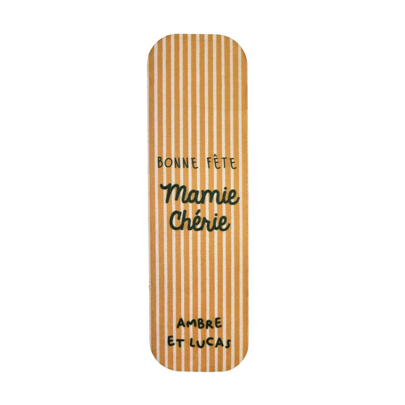 Craquez pour ce marque-page en bois coloré, idéal à offrir pour la Fête des grands-mères, ou tout simplement pour faire plaisir à une mamie amatrice de lecture. Conçu et fabriqué avec soin dans notre atelier normand, ce marque-page est découpé et imprimé dans du bois de peuplier. Son épaisseur de 3 mm protège vos pages et met fin aux pages cornées, tout en ajoutant une touche élégante et coloré à vos moments lecture.