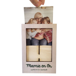 Offrez un cadeau unique et plein de tendresse avec ce cadre photo à poser spécialement imaginé pour la fête des mamies. Entièrement fabriqué en France, dans notre atelier normand, ce cadre est conçu avec soin à partir de peuplier de 3 mm, un bois léger, naturel et durable.