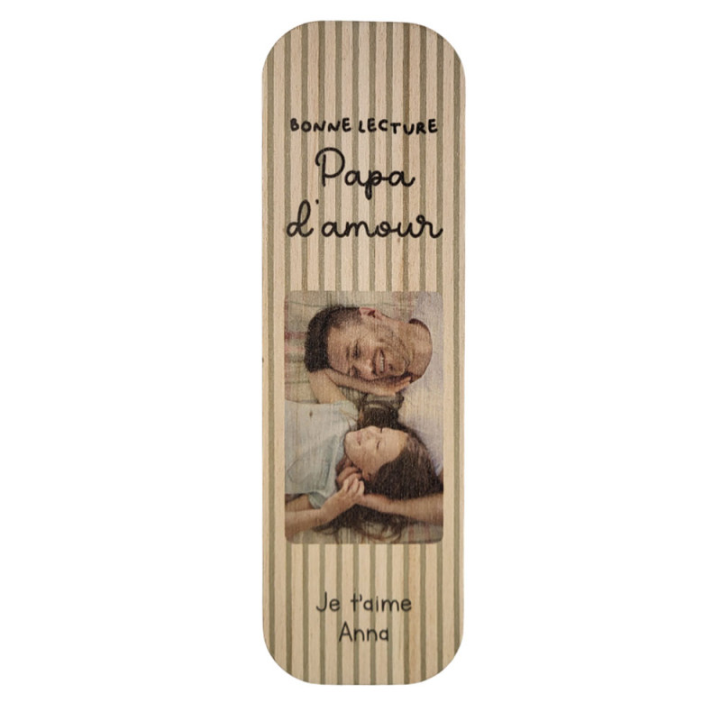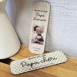 Vous craquerez à coup sûr pour cet adorable marque-page en bois personnalisé, un accessoire aussi pratique que plein de tendresse. Conçu pour accompagner les papas amateurs de lecture, il apporte une touche douce et naturelle à chaque moment de lecture.