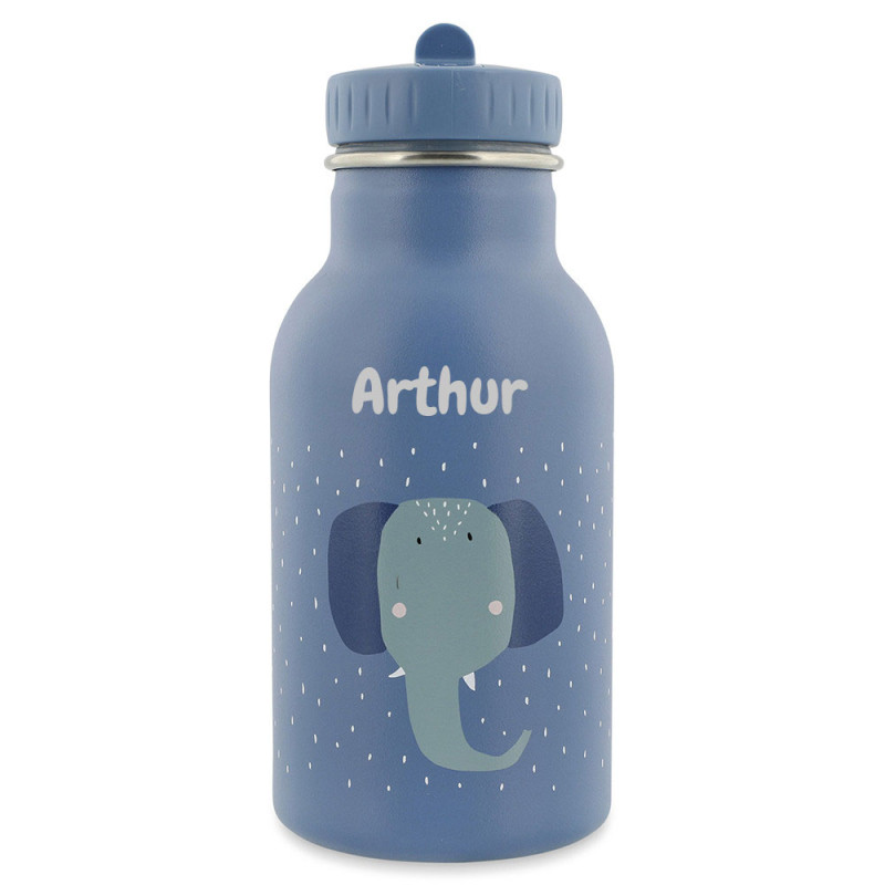 Cette gourde est disponible en différents coloris ornés de charmants petits animaux.