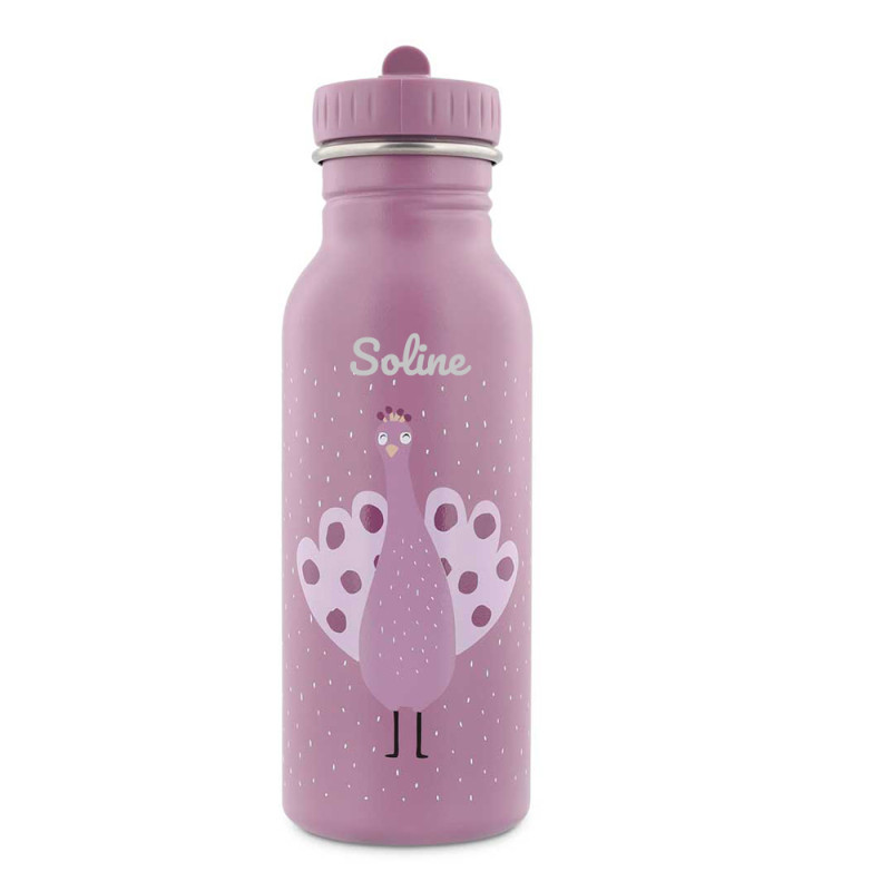 Et pour que personne n’emprunte la jolie gourde paon violet de votre enfant, vous avez la possibilité de faire graver son prénom dessus.