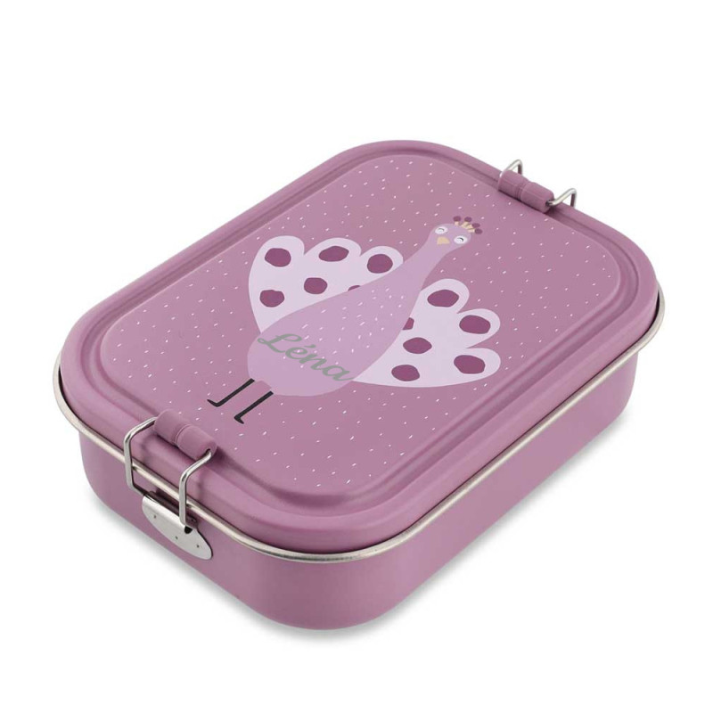 Choisissez cette lunch box en métal ornée du paon violet pour offrir à votre enfant un accessoire à la fois pratique, sécurisé et personnalisé, combinant sécurité alimentaire, design attrayant et plaisir de manger.