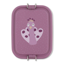 Choisissez cette petite lunch box en métal ornée de paon violet pour offrir à votre enfant un accessoire à la fois pratique, sécurisé et personnalisé, combinant sécurité alimentaire, design attrayant et plaisir de manger.