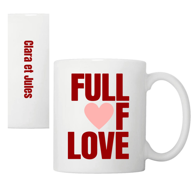 • Sur la tranche du mug (à l’opposé de l’anse) : personnalisation au choix avec deux prénoms, une date importante ou un court message
