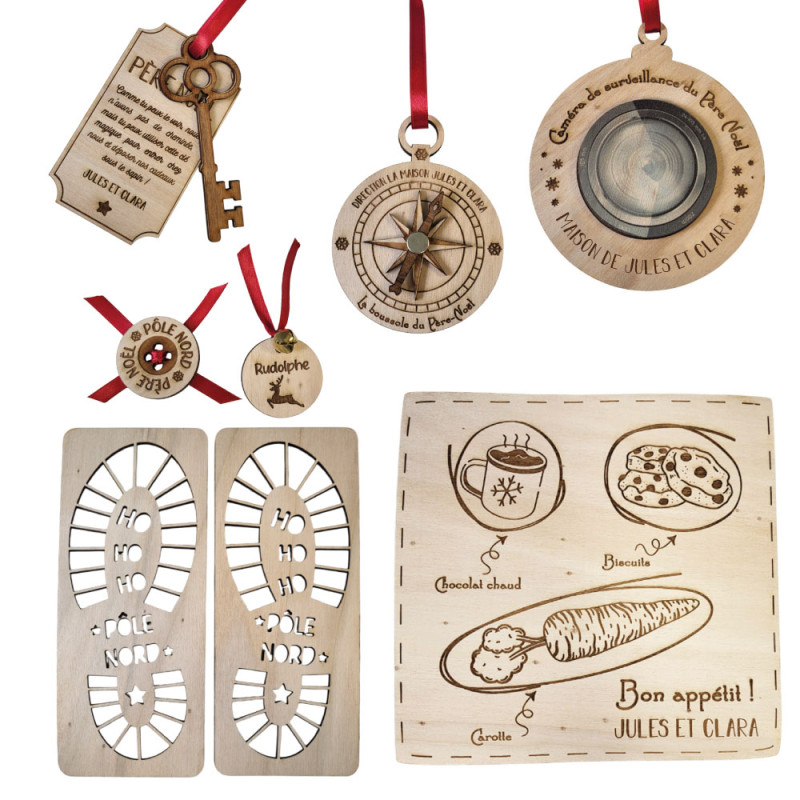Conçu et fabriqué avec passion dans notre atelier en Normandie, près de Caen, ce coffret contient six accessoires magiques en bois qui donnent vie à la légende du Père Noël et feront briller les yeux de toute la famille.