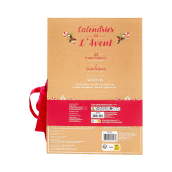 Son design raffiné, aux couleurs traditionnelles de Noël, est accompagné d’une boule de Noël personnalisée attachée au ruban qui referme le calendrier, elle est personnalisable avec un prénom de votre choix.
