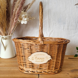 Pourquoi ne pas craquer pour nos adorables paniers en osier personnalisés ? Ils sont accompagnés de leur étiquette en bois, également personnalisée, et fabriqués avec soin dans notre atelier, situé en Normandie, près de Caen. Imaginez la joie de votre enfant lorsqu’il découvrira que son panier porte son prénom ! Vous pourrez faire de jolies photos souvenirs de votre enfant avec son joli panier à envoyer à toute la famille !