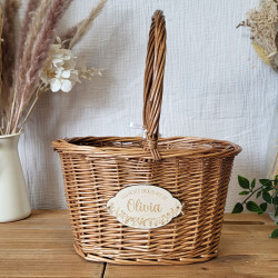 Pourquoi ne pas craquer pour nos adorables paniers en osier personnalisés ? Ils sont accompagnés de leur étiquette en bois, également personnalisée, et fabriqués avec soin dans notre atelier, situé en Normandie, près de Caen. Imaginez la joie de votre enfant lorsqu’il découvrira que son panier porte son prénom ! Vous pourrez faire de jolies photos souvenirs de votre enfant avec son joli panier à envoyer à toute la famille !