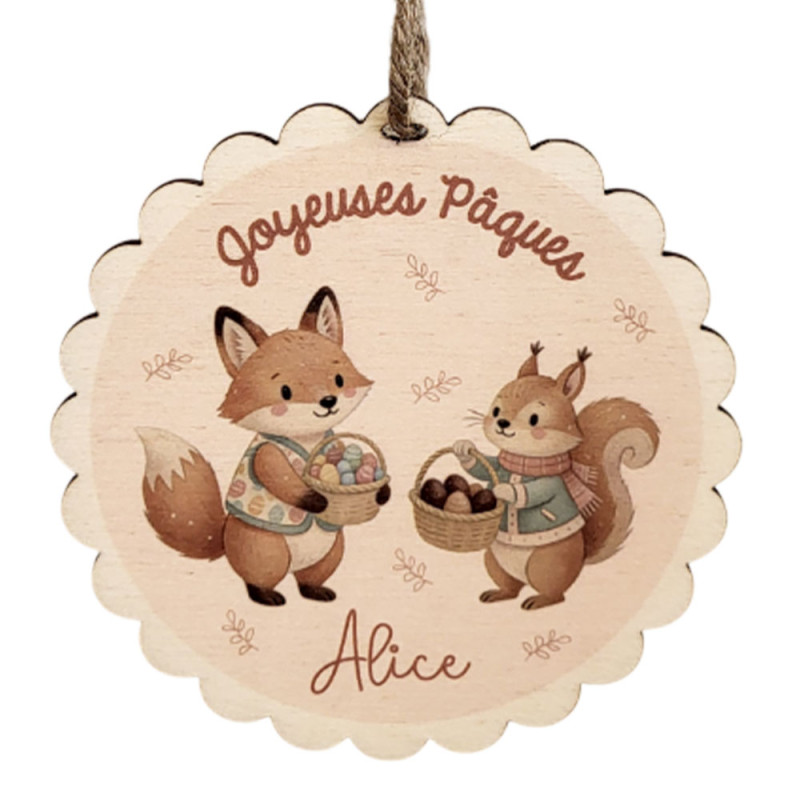 Personnalisable avec le prénom de l’enfant imprimé directement sur le bois, cette décoration devient un souvenir unique et mignon. Son illustration adorable aux couleurs pastel apporte une ambiance tendre et printanière, idéale pour célébrer Pâques en famille.